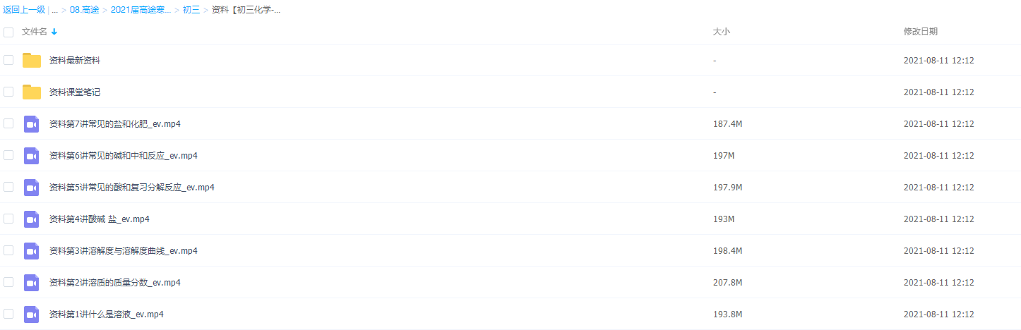 此课件来自高途课堂,张立琛高途初三化学完结 【2021寒假】课程视频,包含视频课程和讲义资料 。 此课件主要内容包括 :常见的盐和化肥、常见的碱和中和反应、常见的酸和复习分解反应、酸碱盐、溶解度与溶解度曲线、溶质的质量分数等视频。