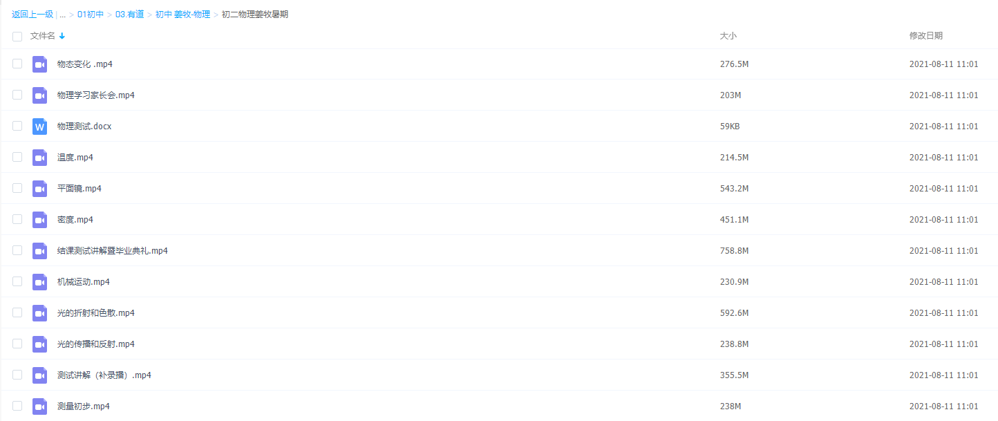 此课件来自有道精品课程,姜牧-有道精品课 初二物理暑期班。此课件主要内容包括:光的折射和色散、光的传播和反射、物态变化 、机械运动、密度等视频。