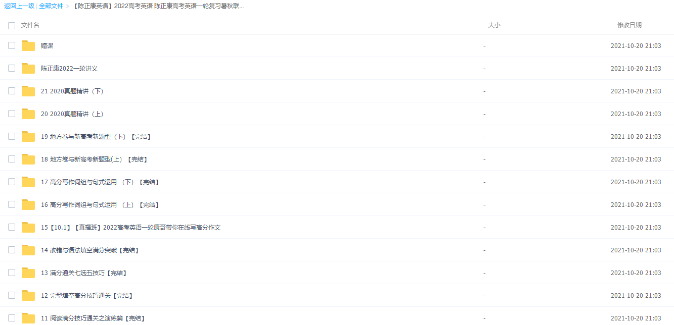 此课件来自2022高考英语陈正康高考英语一轮复习暑秋联报,包含视频课程和讲义资料 。主讲陈正康老师深谙命题规律,授课直达要点、幽默风趣、激情澎湃。此课件主要知识点包括:2022高考英语一轮康哥暑假带你在线记单词、母词记忆法速记必考词汇、高考必考高能语法通关、阅读满分技巧通关之技巧、阅读满分技巧通关之演练篇、完型填空高分技巧通关、满分通关七选五技巧、 改错与语法填空满分突破、 高分写作词组与句式运用 等视频。
