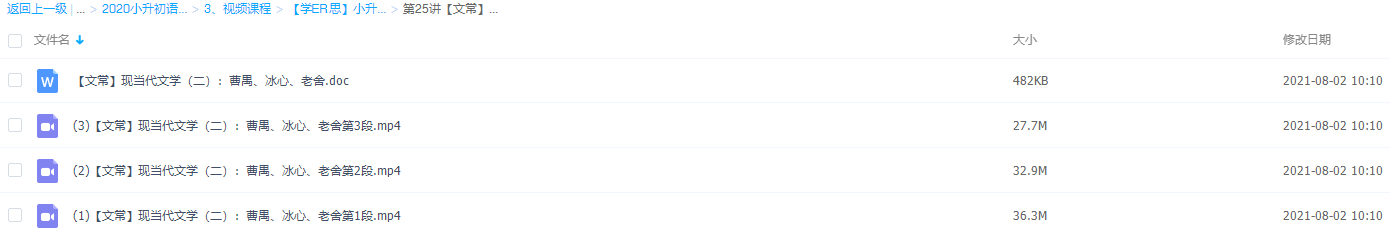 学而思【文常】现当代文学二:曹禺、冰心、老舍必读科目