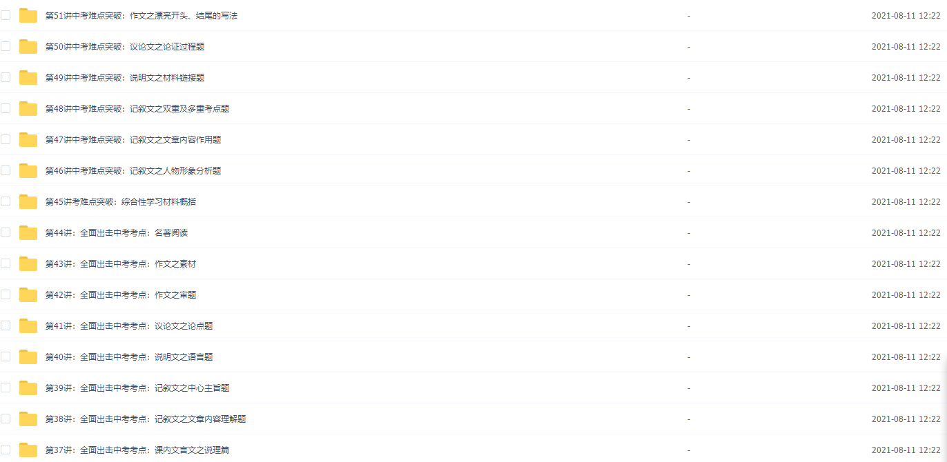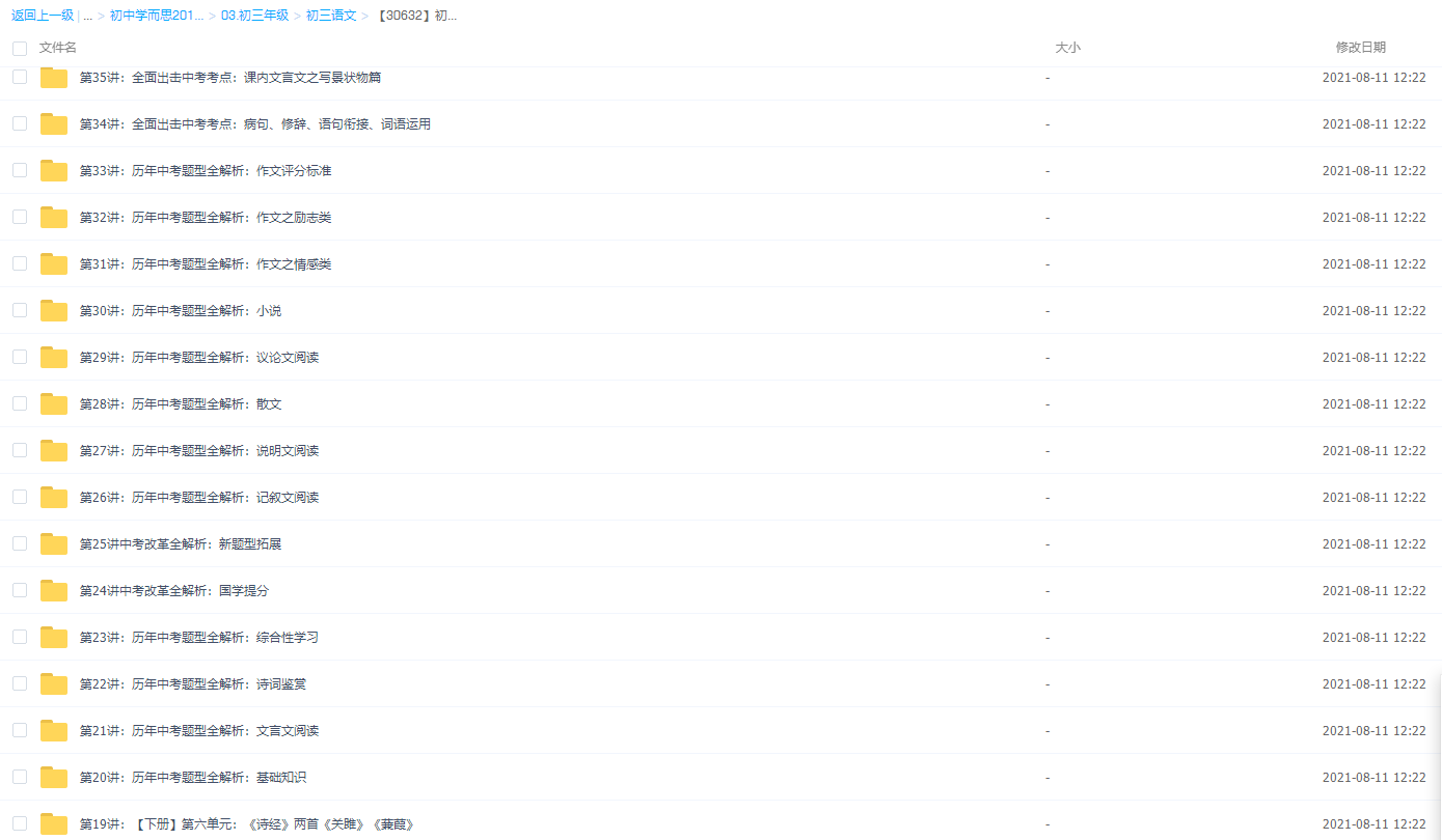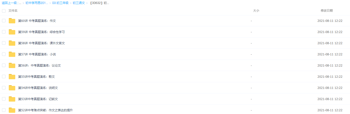 新初三 语文 暑期系统班课程资源