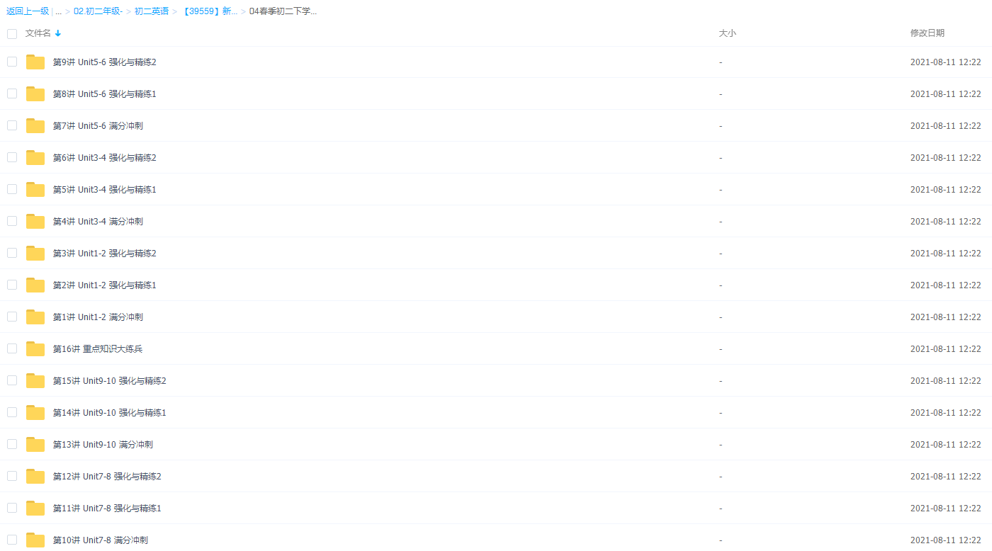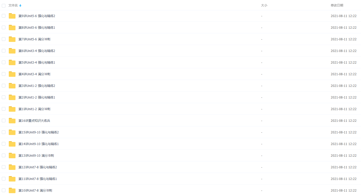 课程目录: 状态 讲次 名称 已上线第1讲:中考英语三轮备考指导 已上线第2讲:...