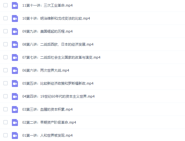 此课件来自学科网世界近现代史专题课程高清视频,此课件主要知识点包括:早期资产阶级革命、血腥的资本积累、19世纪60年代的资本主义世界、比较新经济政策和罗斯福新政、两次世界大战、二战后社会主义国家的改革与演变、二战后西欧、日本的经济发展、美国崛起的历程、明治维新和戊戌变法、三次工业革命、欧洲近代的两次思想解放运动、国际共产主义运动的发展、殖民地半殖民地人民争取主权的的斗争、二十世纪国际格局的变化、世界经济全球化。。。