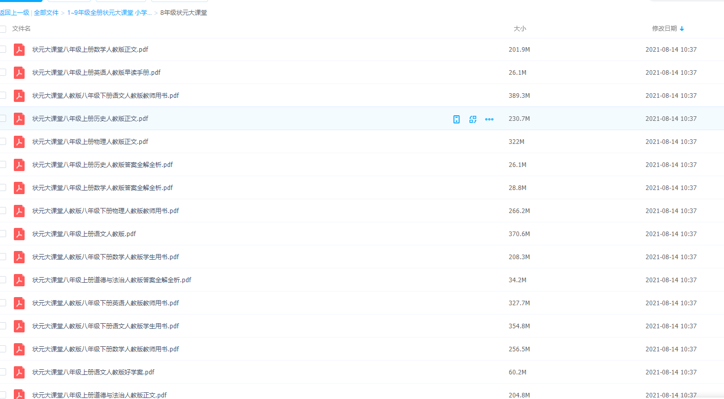 初二8年级状元大课堂全科电子课本辅导资料教师用书提高课程大全,电子课程随时随地都可以学习,所以很是方便呢!