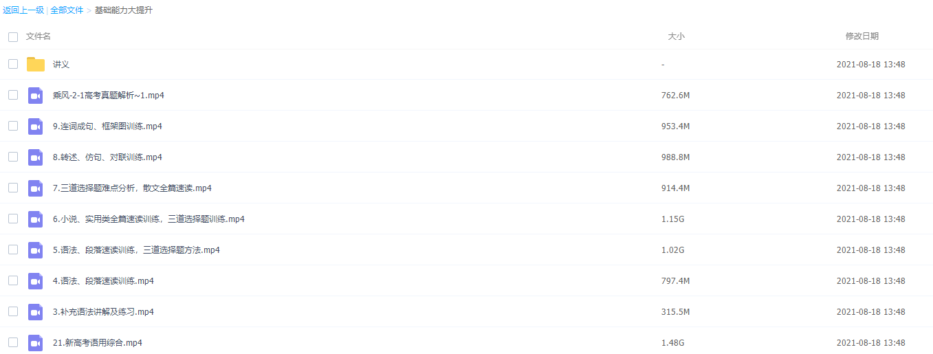 此课件来自腾讯课堂,2022高中语文视频课程乘风基础能力完结,包含视频课程和讲义资料 。主讲乘风老师对全国卷有精深研究,善于通过思维训练深入解析题目,自创多种高考语文学习方法,能够帮助学生有效提高阅读、作文等题型分数。此课件主要知识点包括:语用基本功总结,现代诗歌理解力训练、小说散文理解力训练,作文审题训练、理解力训练、作文审题训练、速读梳理全文训练,新高考语用训练、速读概括全文训练,概括压缩训练等视频。