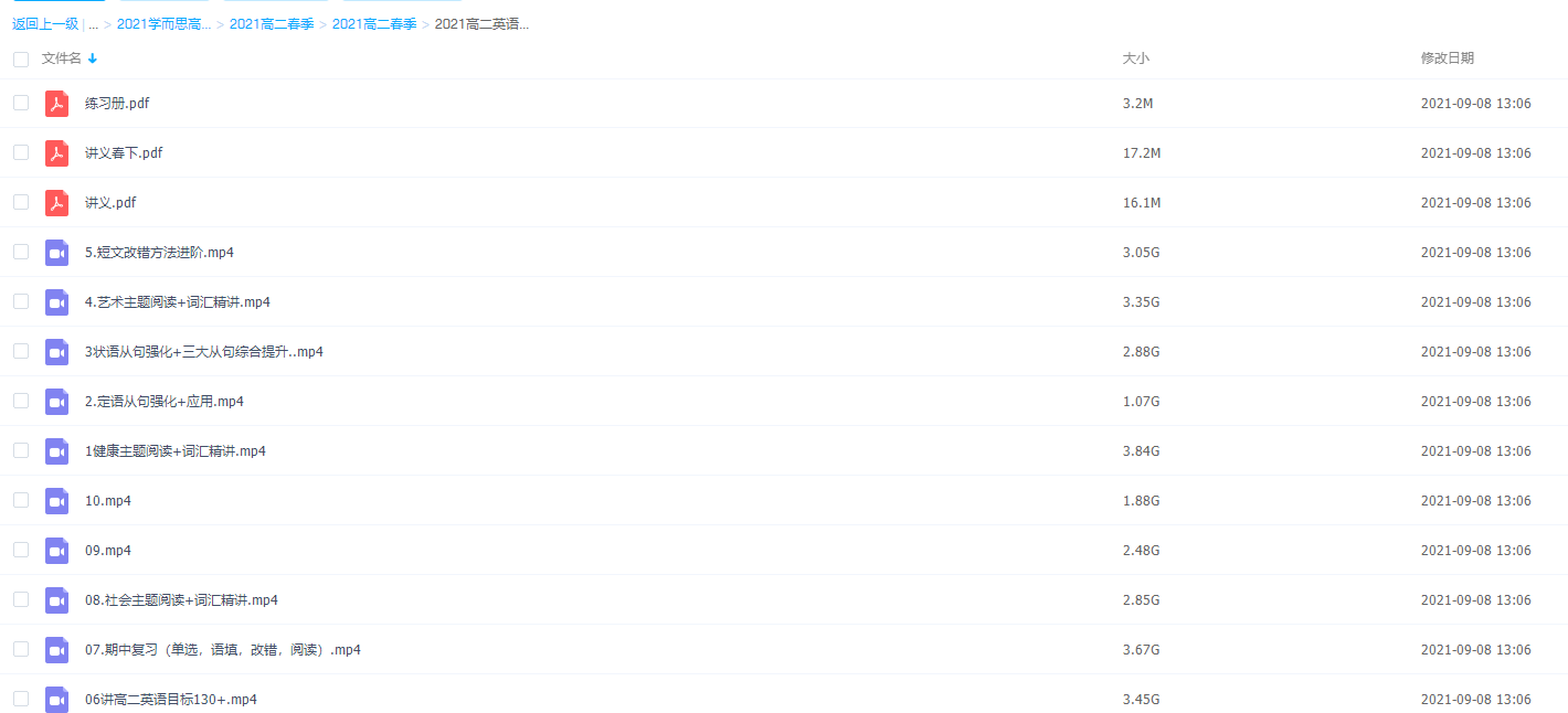 此课件来自学而思网校,2021学而思高二春季昆尼英语目标985直播课视频课程。主讲昆尼老师其授课风格是擅长从基础开始,一步步学习,抓住语言规律。此课件知识点包括期中复习(单选,语填,改错,阅读) 、社会主题阅读+词汇精讲、健康主题阅读+词汇精讲、定语从句强化+应用、状语从句强化+三大从句综合提升、艺术主题阅读+词汇精讲和短文改错方法进阶等视频。