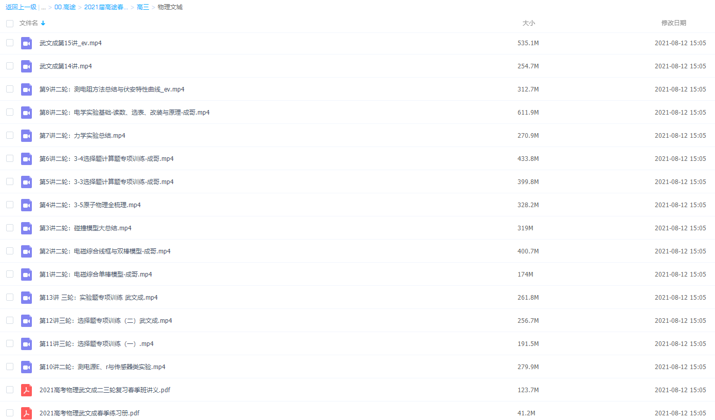 此课件来自于高途课堂,2021年高三春季物理武文成二轮三轮视频课,课程知识点包括测电源E、r与传感器类实验、电磁综合单棒模型、电磁综合线框与双楼模型、3-5原子物理全梳理、3-3选择题计算题专项训练、3-4选择题计算题专项训练、力学实验总结和电学实验基础-读数选表、改装与原理等视频。配套的讲义是:2021高考物理武文成二三轮复习春季班讲义.pdf和2021高考物理武文成春季练习册.pdf。武老师是需要难题偏题拔高的同学首选,他往往可以用比较幽默诙谐的语言将难题讲通讲透,而且往往忽悠提纲挈领的观点输出,让你感觉物理课本前所未有的薄。