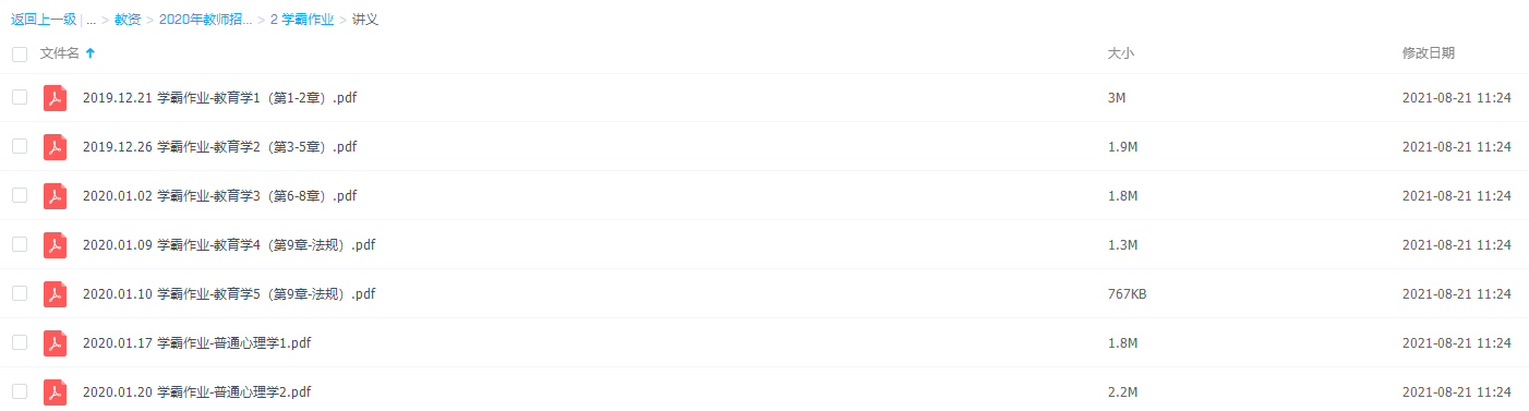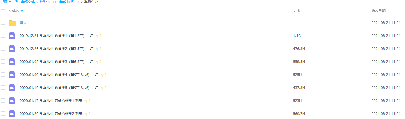 本课件是教师资格证笔试系统精讲班学霸作业学习课程,包含了很多知识点讲义学习资料,可以帮助同学们多加练习!