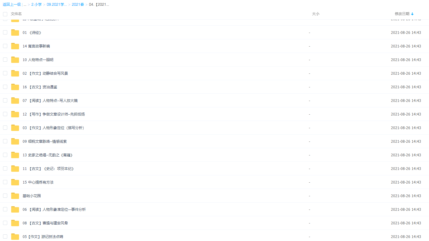 此课件来自学而思网校,2021学而思陈照四年级语文春季视频课程,包含视频课程和讲义资料 。此课件的主要知识点:【作文】动静结合写风景、【阅读】人物特点–写人放大镜、【写作】争做文章设计师–先抑后扬、【作文】人物形象定位(描写分析)、【古文】《史记:项羽本纪》等视频