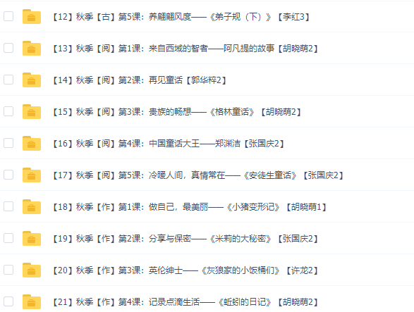 此课件来自诸葛学堂,一年级小学语文巨人大语文四季版春季秋季暑假寒假共111个视频。语文的基础知识必须从孩子一年级抓起,孩子的书写习惯十分重要,作为家长要给孩子正确、规范的示范,要让孩子安正确的笔顺和笔画来写,力求把字写工整、规范。其次要训练孩子写话的能力,按顺序看清图意,把话写清楚,可以训练孩子加上自己的想象。