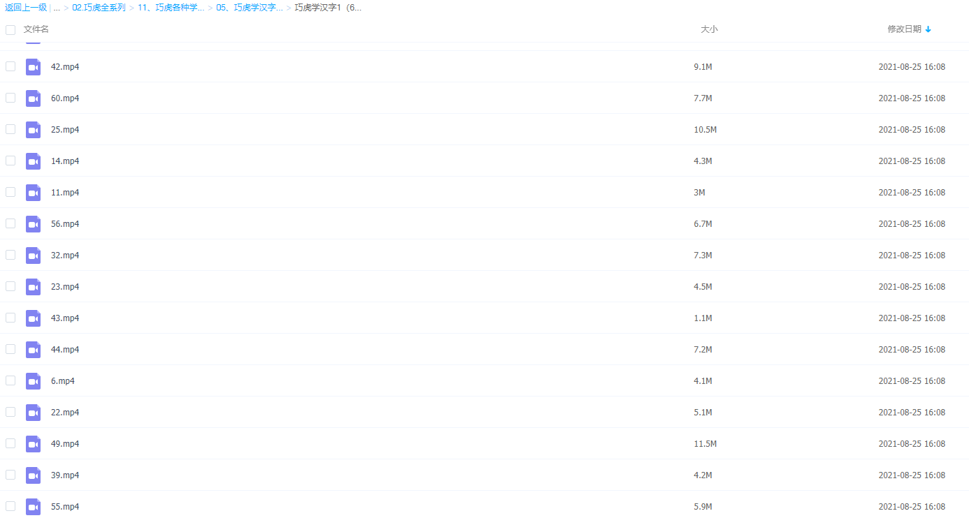 《巧虎学汉字》里包含巧虎学拼音的教程,共63集。视频中通过趣味动画教小朋友们轻松系统的学习认识常见的汉字,与巧虎学汉字一起,构成了孩子们语文启蒙的双轨教程。