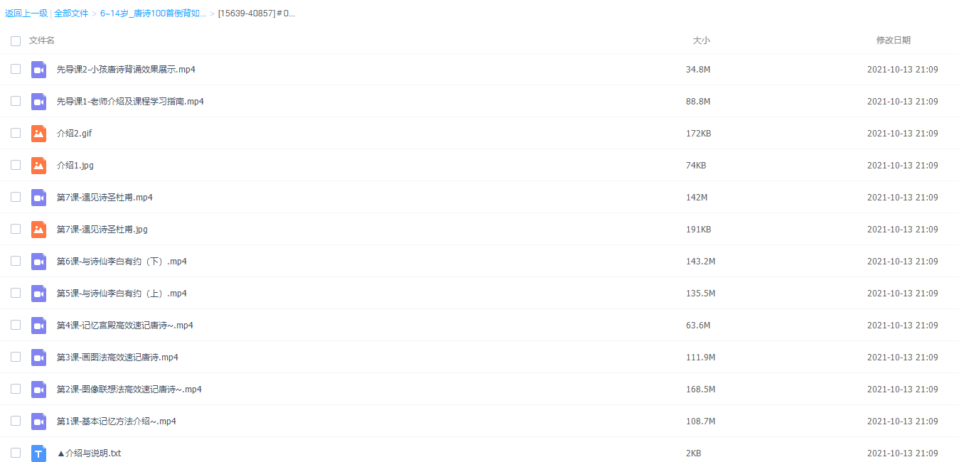 诗词是传承古今的歌唱,通过特殊记忆法掌握背唐诗的万能公式,让孩子把100首唐诗倒背如流,不仅用于背诵唐诗,还可以复制迁移运用到背诵国学经典,十分实用。此课件来自《唐诗100首倒背如流》李庆掌握高效记忆法 ,这21堂视频大课内,通过4个阶段的学习,掌握高效的唐诗速记法,从此,诗词背诵再也不是一件难事!