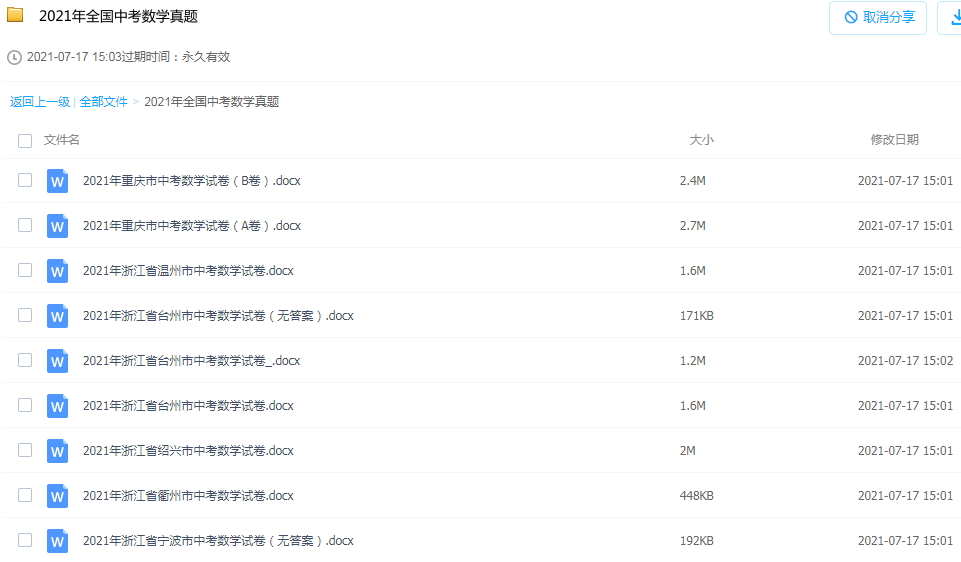 2021年全国中考数学真题(116份,大部分有解析)